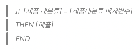 - 제품 대분류와 제품 대분류 매개 변수 값이 같으면 → 제품 중분류를 가져오고