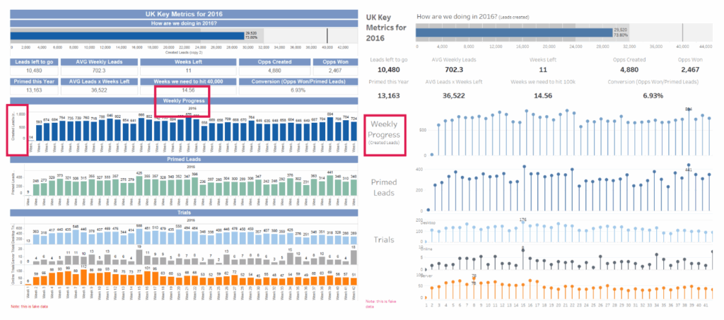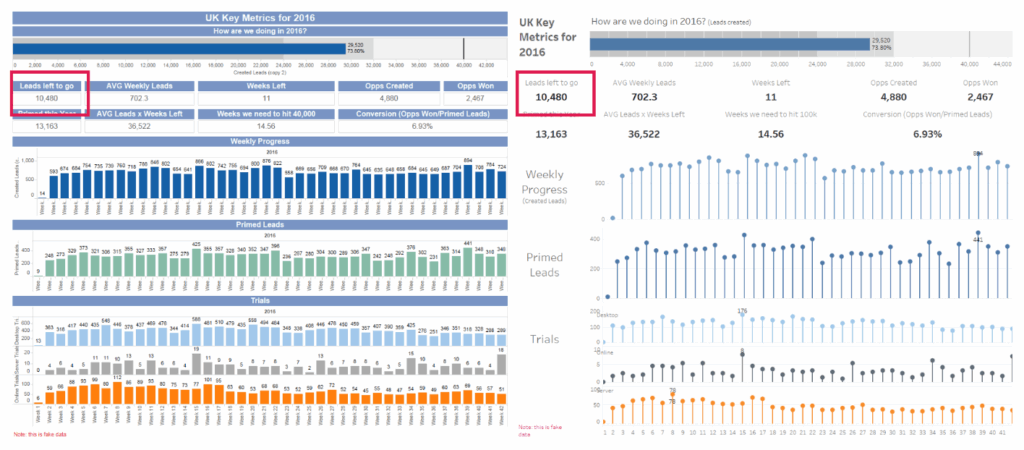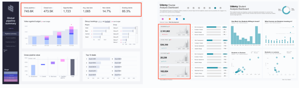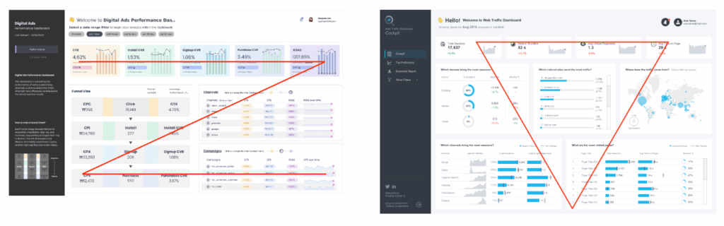 하지만! 두 가지 대시보드를 살펴보았을 때, “시선이 어디로 집중되느냐”에서 차이가 있음이 느껴지시죠?