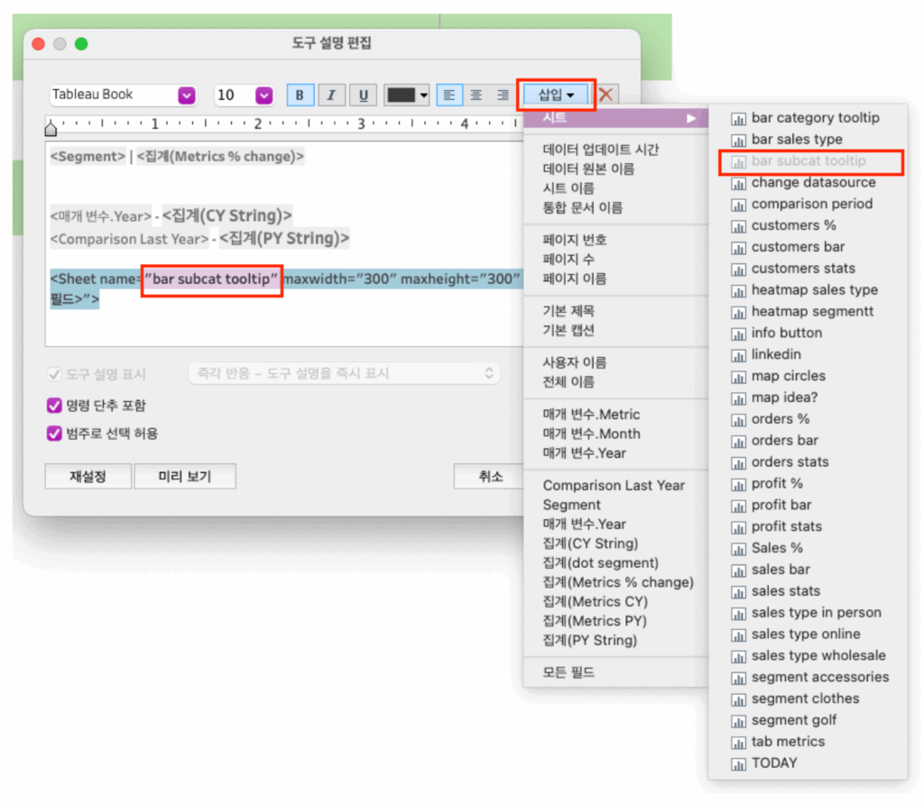 자세한 방법이 궁금하시다면 다음의 링크를 참고해보세요. 👉 도구 설명 안에 뷰 만들기(도구 설명 비주얼리제이션) (Link)