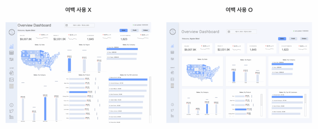 여백은 대시보드 디자인에서 중요한 역할을 합니다.