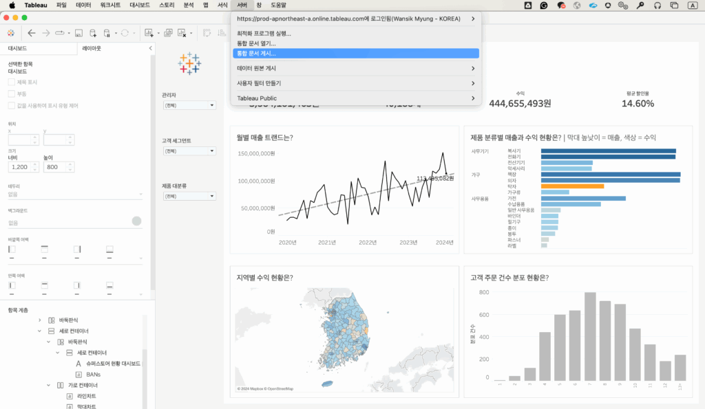 :railway_track::school_satchel:Tableau Bootcamp 9일차 학습과 퀘스트가 클리어되었습니다! (긴 텍스트 분량을 모두 이겨내고, 여기까지 오시느라 정말 수고 많으셨습니다:+1:)