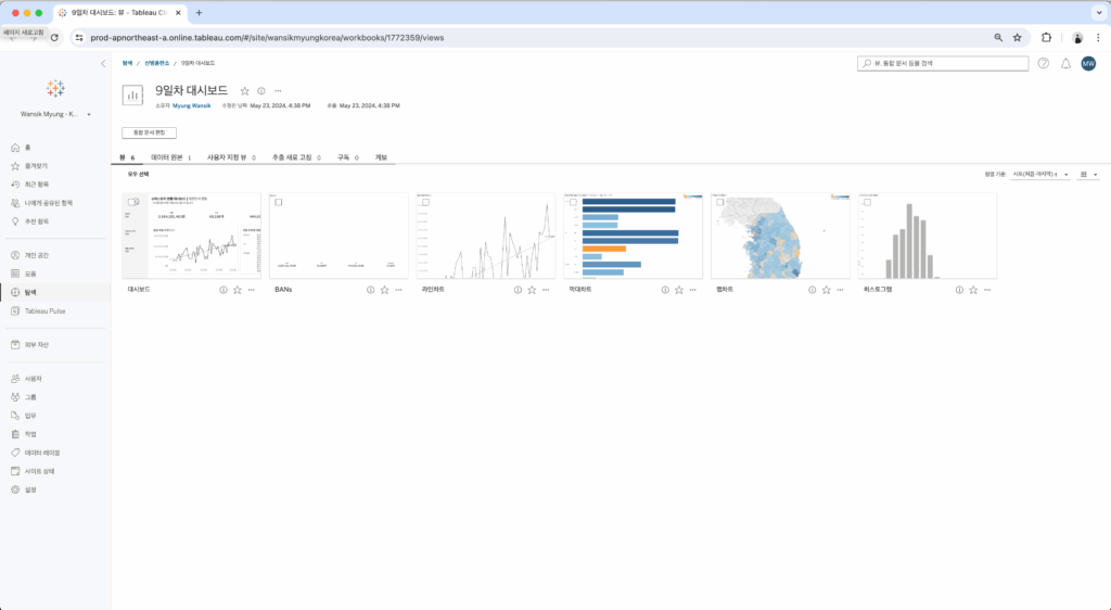 해당 과정을 수행하시면 URL 기반으로 웹안에서 내가 만들었던 대시보드와 워크시트를 동료분들과 함께 확인하고 수정할 수 있습니다.