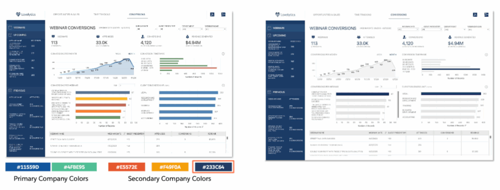 대시보드 전체 이미지를 결정하는 메인 색상을 사전에 정의해보세요. 시각적으로 통일화 된 대시보드를 작성할 수 있습니다.